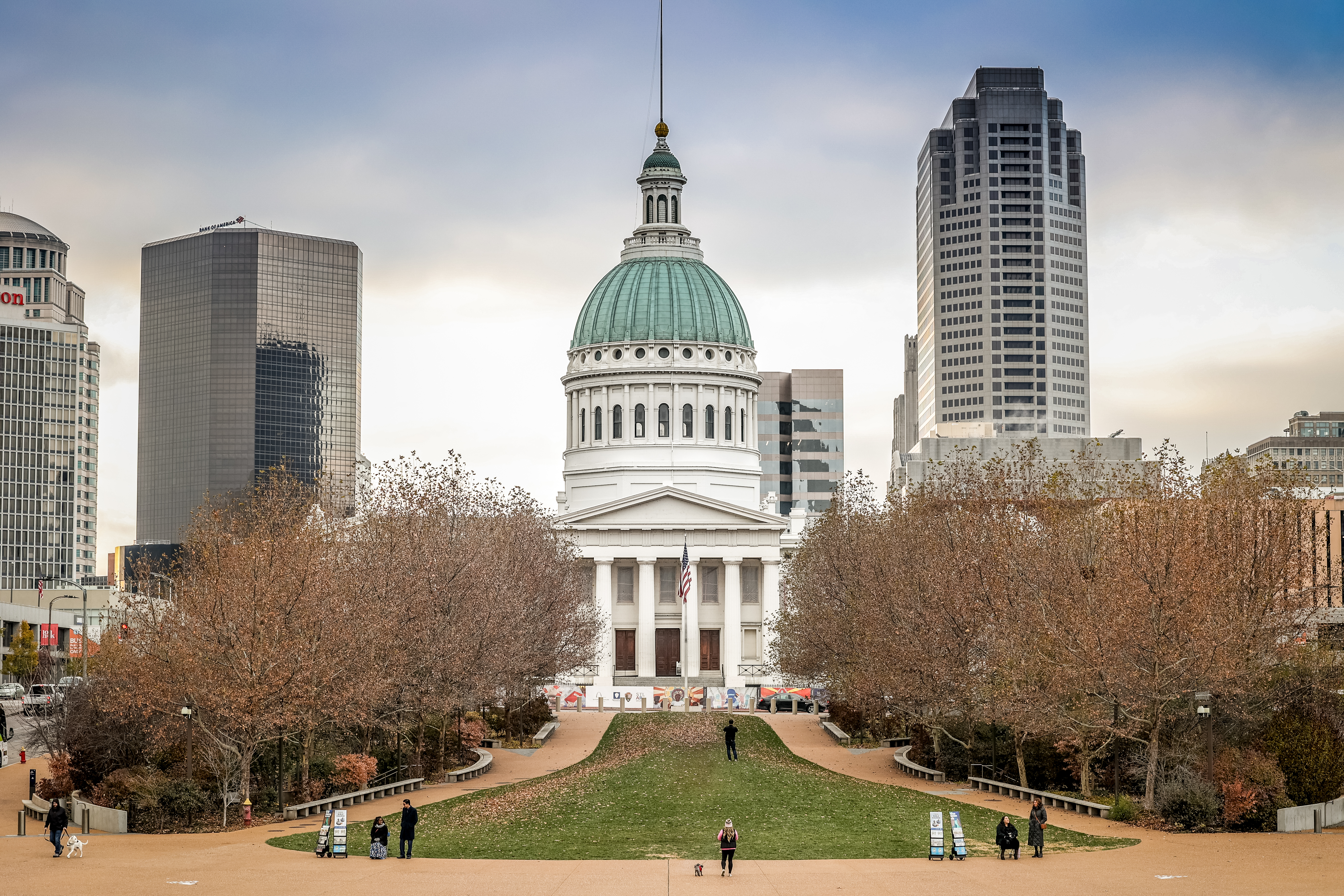 Sitting on the property of the Gateway Arch National Park property is the Old Courthouse.