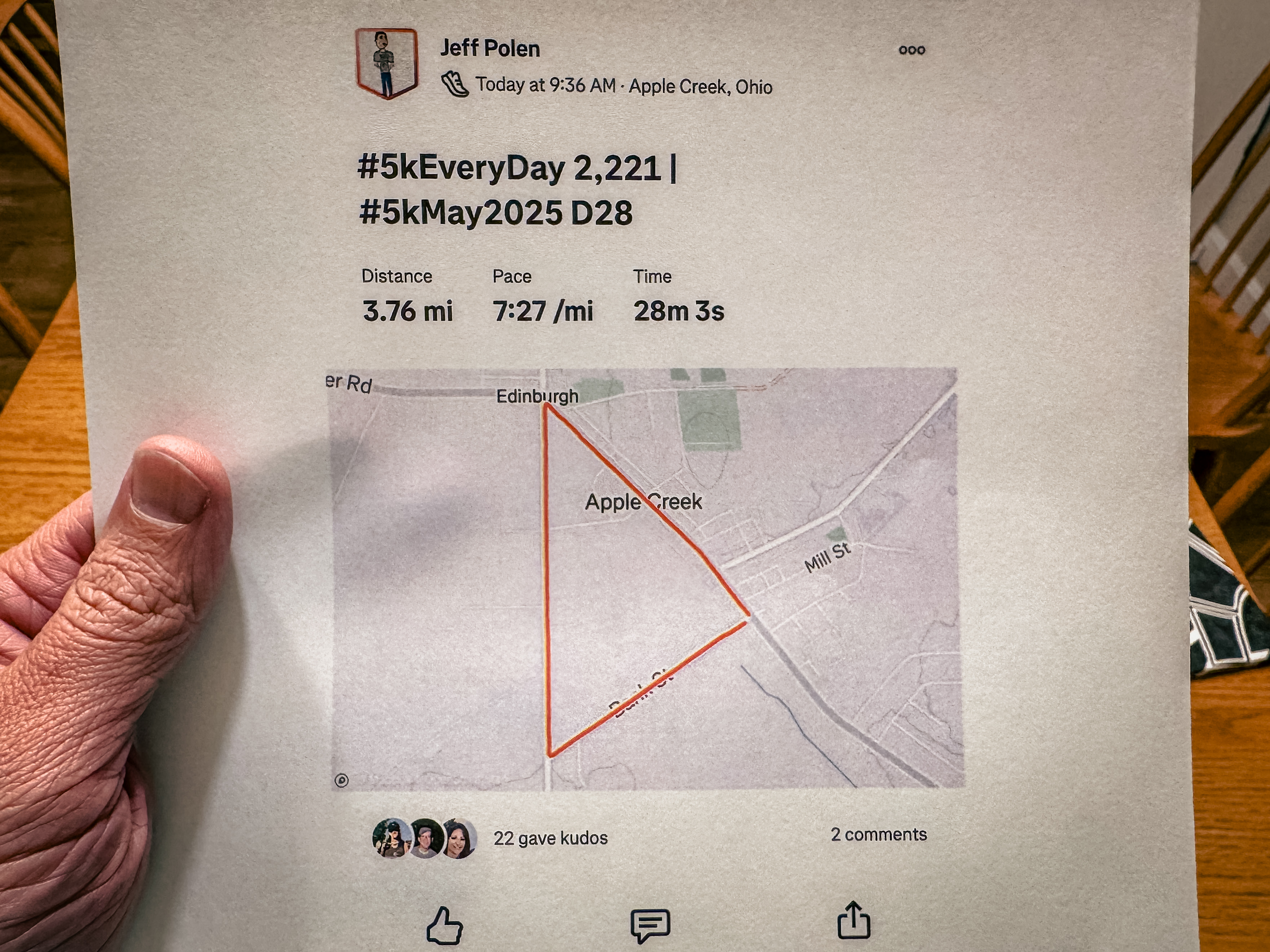 The #DailyFunPhoto challenge for #5kMay2025 Day 28 was to have FUN WITH SHAPES. (Do a daily 5k that creates a fun route on Strava. Share a screenshot.) For this challenge, it only … Continue Reading #DailyFunPhoto Day 28 + Photo Every Day 2025